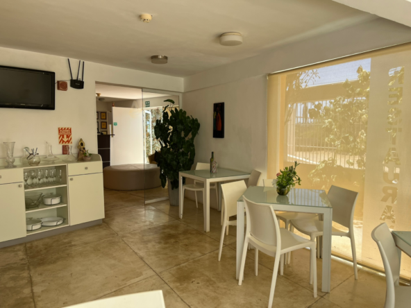 Descubre esta encantadora posada, un oasis de tranquilidad en la hermosa Isla de Margarita. Sumérgete en su jardín tropical, relájate en cómodas hamacas bajo la sombra y disfruta de una refrescante piscina con mosaicos verdes que evocan un ambiente selvático.
